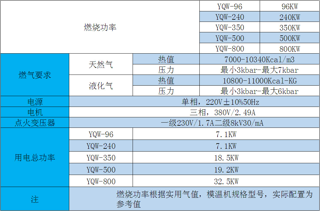 燃气模温机规格参数